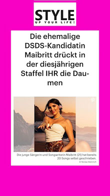 Maibritt is Austria’s only Latin pop-schlager singer, songwriter, TV host and also the youngest and most successful Austrian contestant in the history of *Deutschland sucht den Superstar*, reaching the Top 40. She won the major RTL casting for the female role in the Euro-Latin pop duo *Pachanta* and received the *Best Performance Award* at the Austrian talent competition *Helden von heute – Falco goes school*.